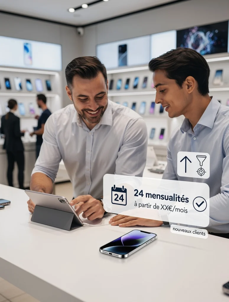 La communication en point de vente est essentielle pour informer les clients sur l’offre de financement en 24 mensualités. Les Apple Stores et les magasins revendeurs doivent afficher clairement l’offre et former leurs vendeurs à expliquer les avantages aux clients. La mise en place d’outils de simulation de mensualités peut également aider les clients à prendre une décision éclairée.